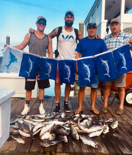 All bait and fuel are provided in the cost of the charter, unless a special request is made. Any overage charges will be noted up-front. Feel free to bring food and drink of your choice as. If you are interested in having your trip catered, contact us, and we will make arraignments from one of our local eateries. We also suggest bringing a change of clothing to accommodate any changes in weather.